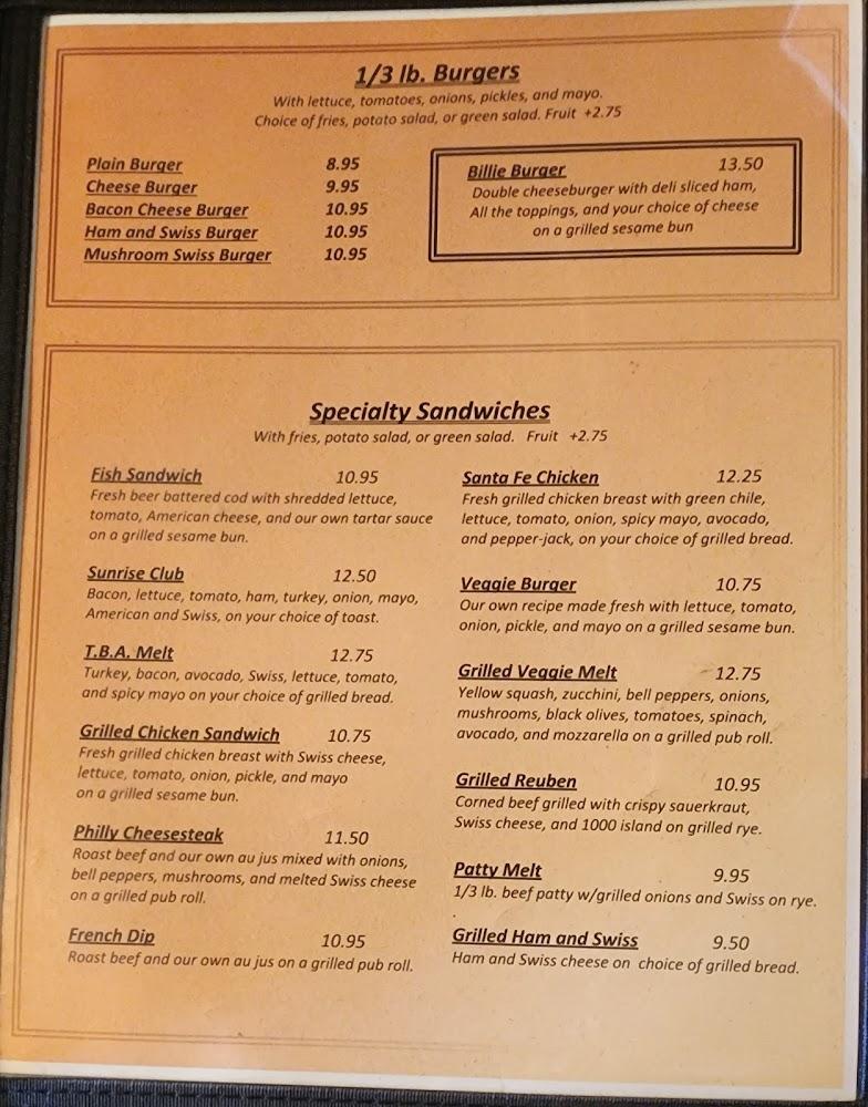 The menu at Sunrise Cafe is a delightful mix of traditional American diner food. You'll find breakfast favorites like omelets, pancakes, and freshly brewed coffee, all prepared with care.