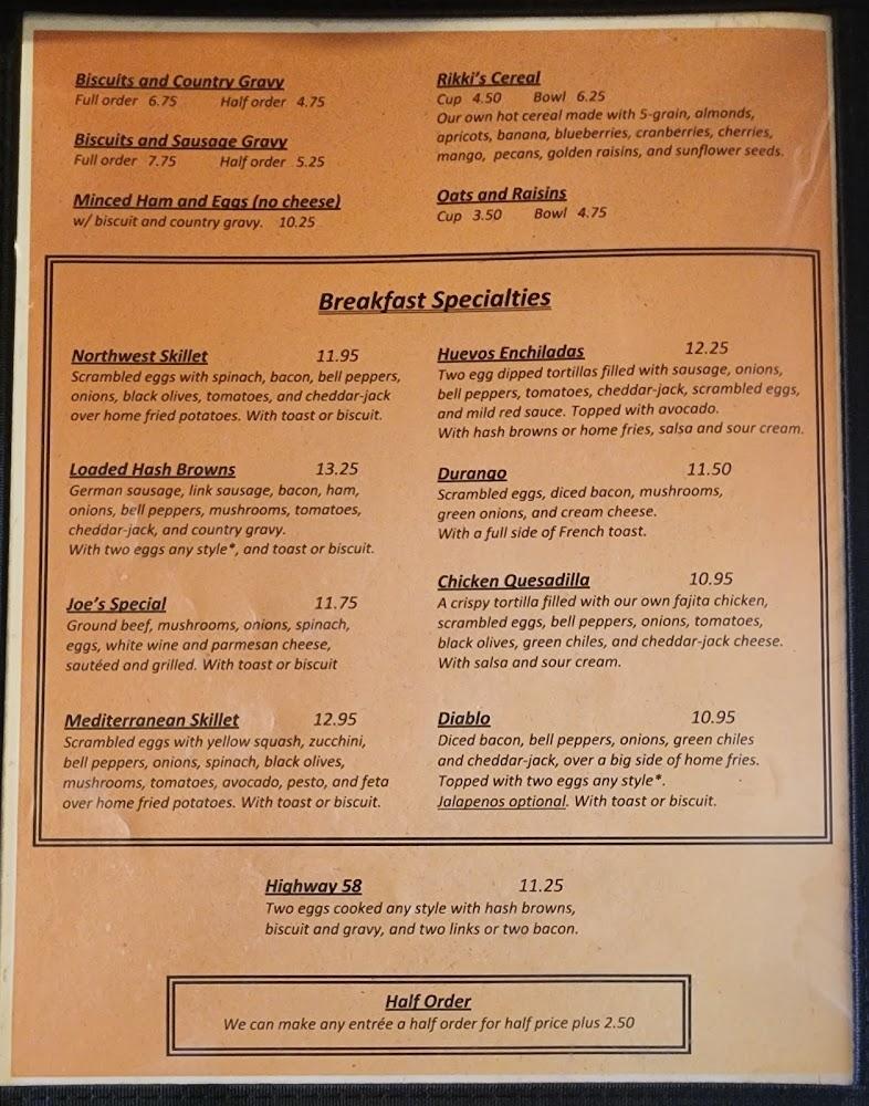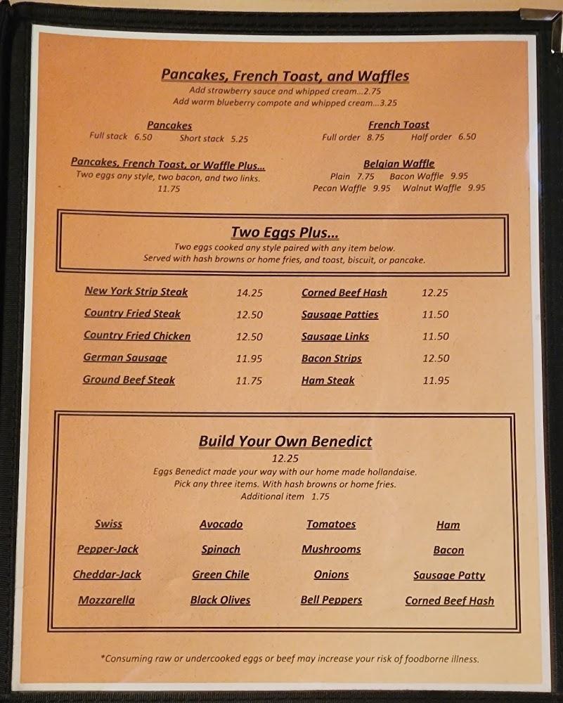 Specialties like the Loaded Hash Browns and Mediterranean Skillet attract attention. Light bites include sandwiches and an array of side items. Desserts round out the menu, perfect for those with a sweet tooth.